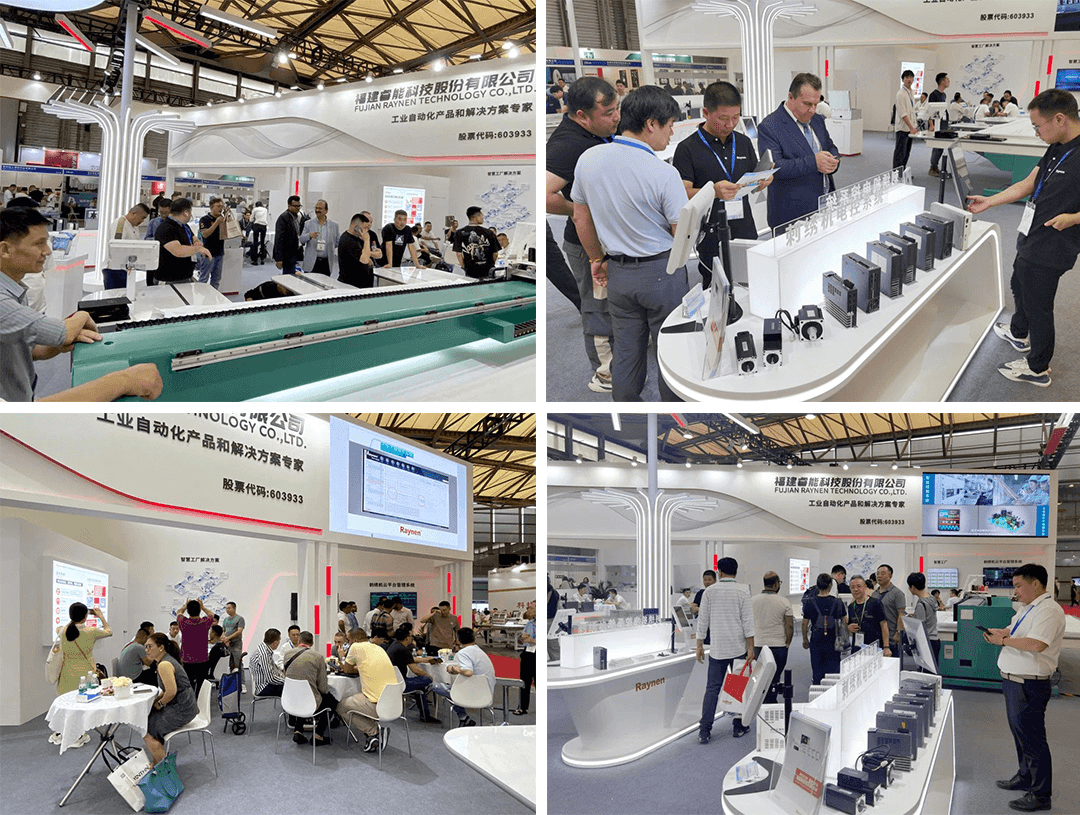 Chuir limistéar taispeántais Raynen Technology atá suite i Halla E5 fáilte roimh líon mór cairde nua agus sean agus cuairteoirí gairmiúla chun cuairt a thabhairt agus cumarsáid a dhéanamh le linn an taispeántais. Chomh maith le táirgí a bhaineann go sonrach leis an tionscal, mar mheaisíní bróidnéireachta, meaisíní patrún, agus córais rialaithe leictreonacha meaisín teimpléid, thug an Raynen booth táirgí uathoibrithe ginearálta ar nós Internet of Things, PLC, agus córais servo ginearálta chun freastal ar riachtanais cásanna éagsúla, chomh maith le réitigh aon-stad do mhonarchana cliste, rud a chuir go leor iontas ar na cuairteoirí a stop cumarsáid a dhéanamh.